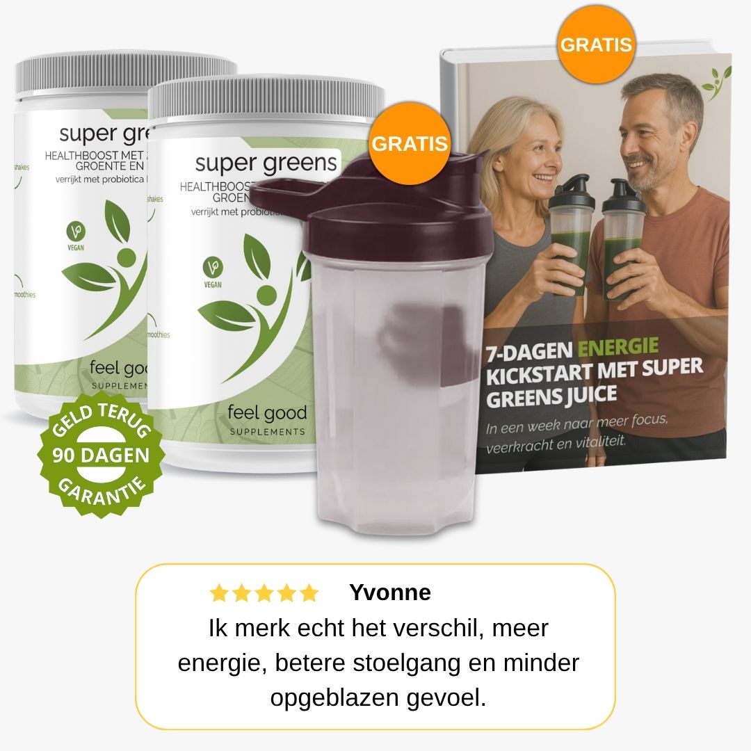 Ja, Super Greens Juice is volledig plantaardig en bevat geen dierlijke ingrediënten. Het is dus 100% geschikt voor vegetariërs én veganisten. Sterker nog: juist voor mensen met een plantaardig dieet is dit supplement zeer aan te raden, omdat het helpt om essentiële voedingsstoffen gemakkelijk aan te vullen.